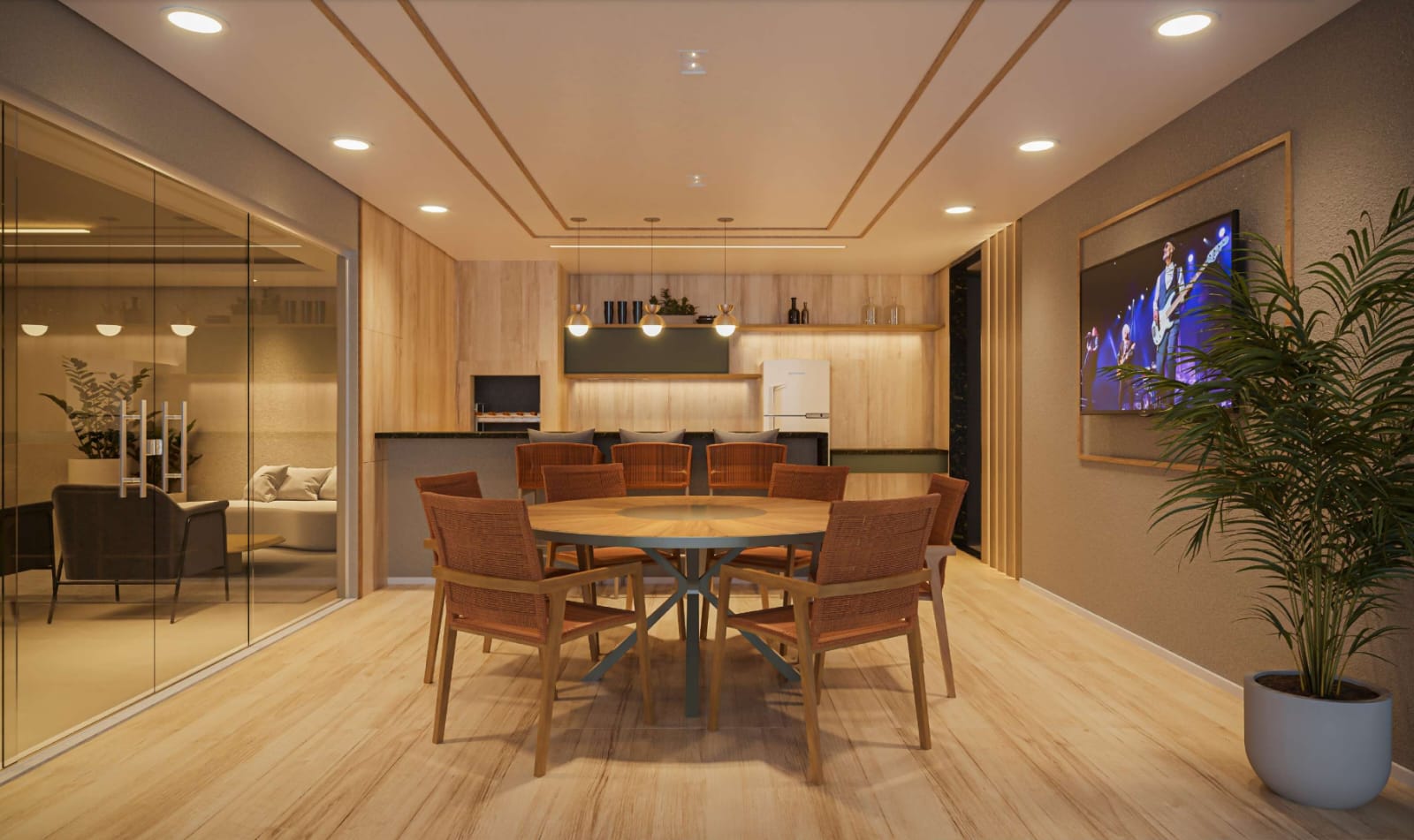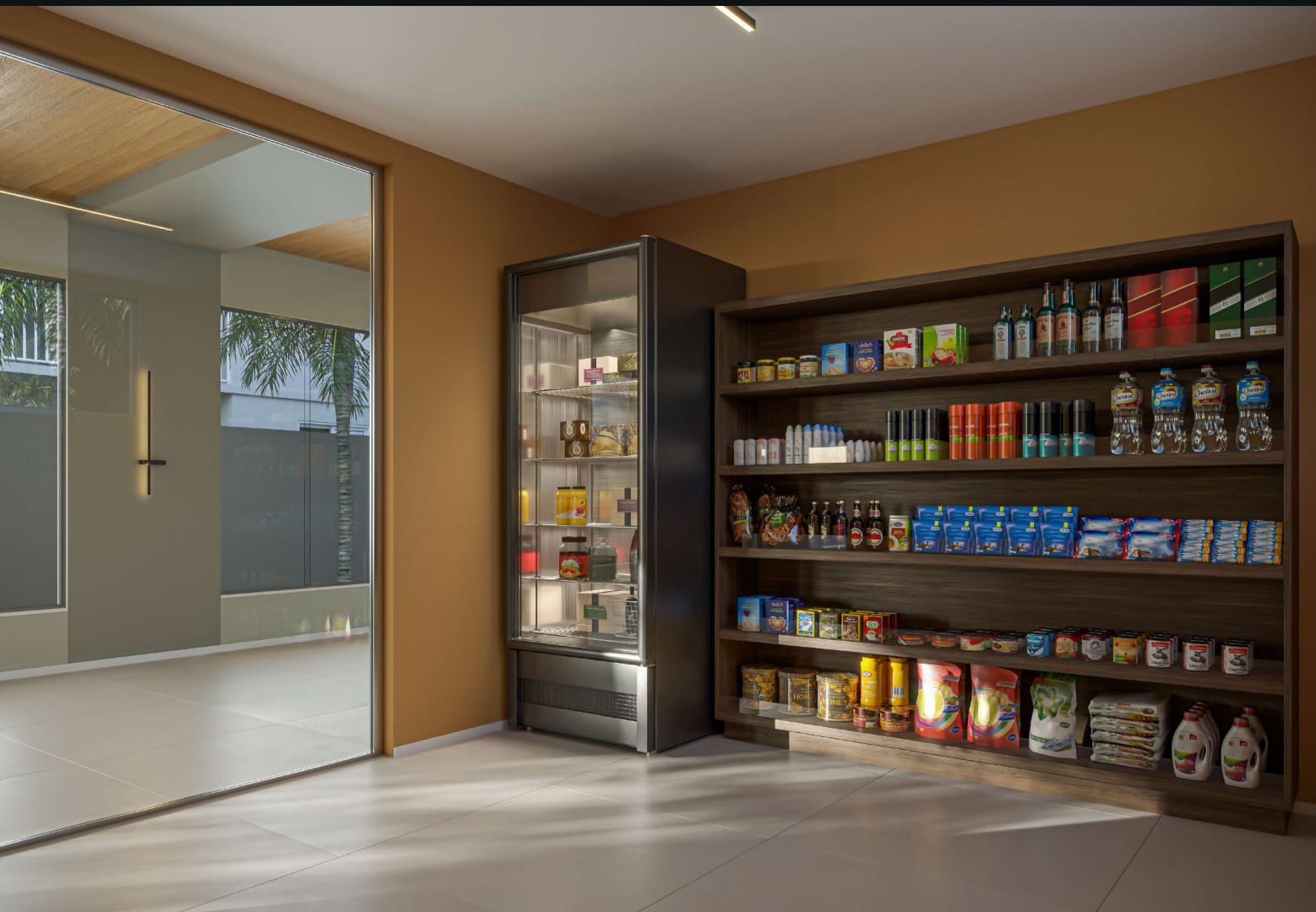 Churrasqueira, espaço gourmet, piscina, salão de festas, academia, quadra, brinquedoteca, playground, bicicletário, pet place, mini mercado.