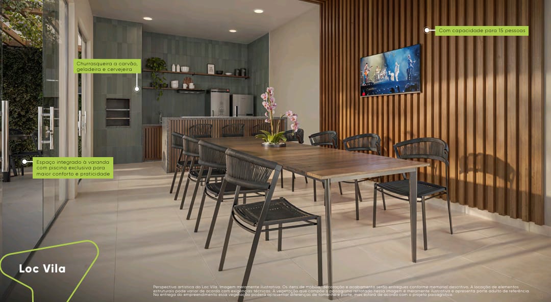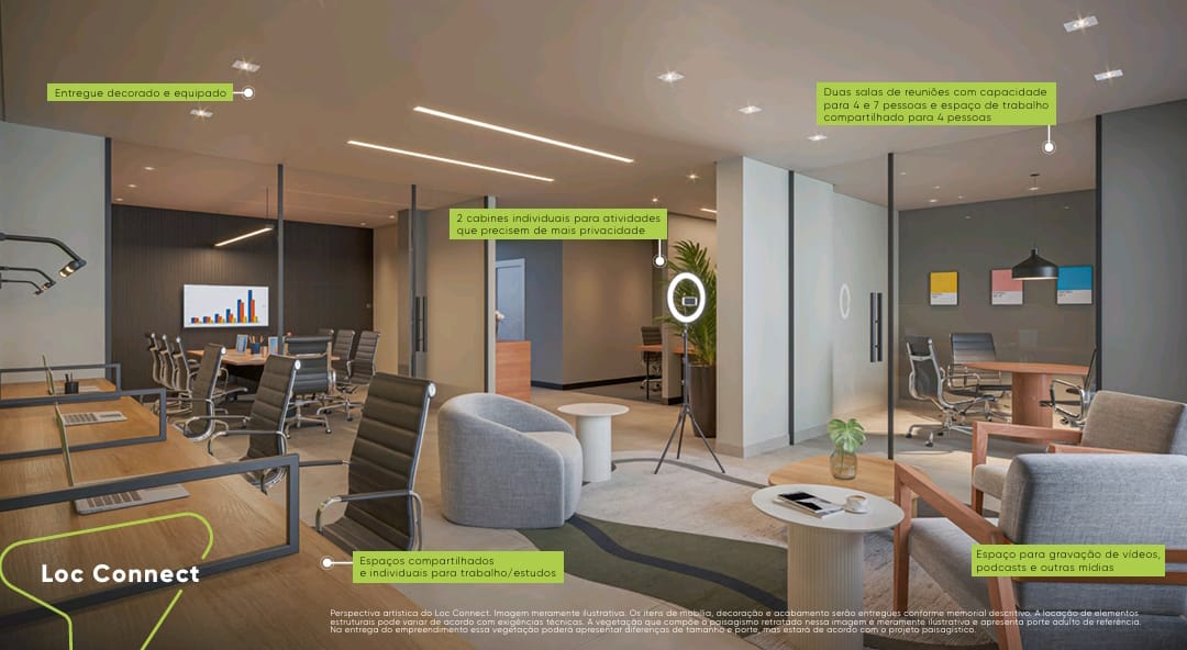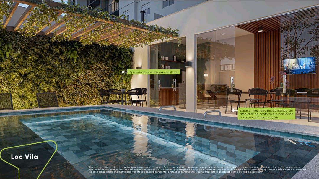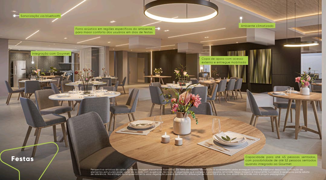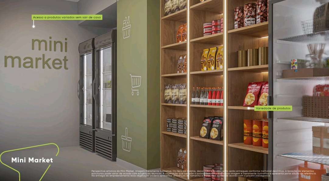 Piscina aquecida com deck seco e molhado, SPA, sala gourmet com churrasqueira, sala de jogos com churrasqueira e chopeira, salão de festas, sauna, sala de massagem, academia, pet place, coworking, studio, sala de reuniões, mini mercado, bicicletário.