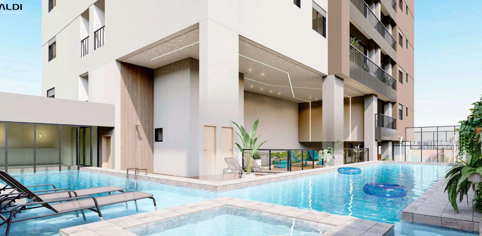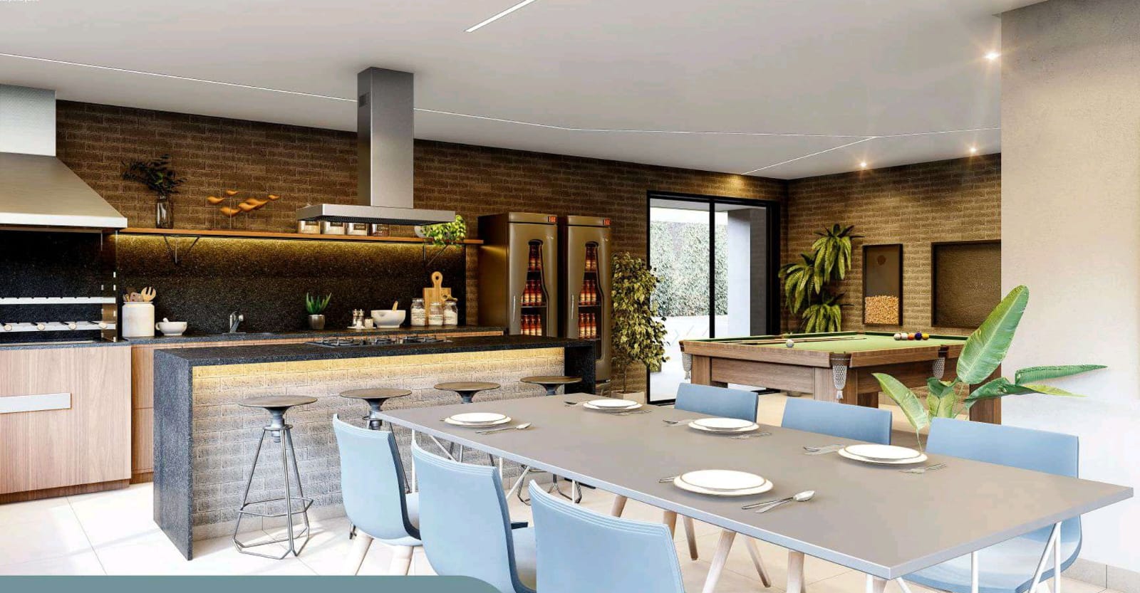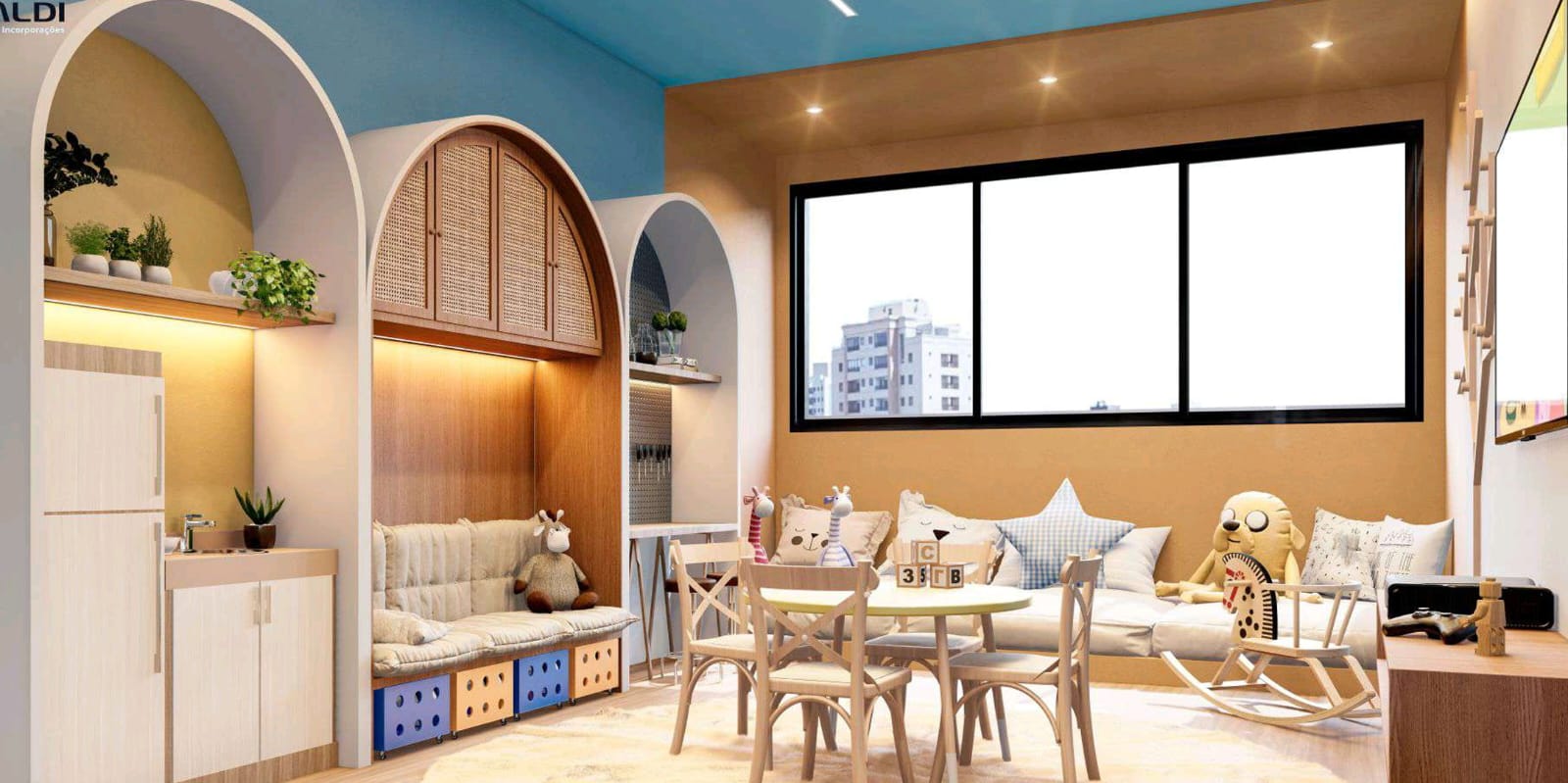 Piscina adulto e infantil, sauna molhada, playground, brinquedoteca, mini quadra, salão de festas, salão gourmet com churrasqueira, jogos.