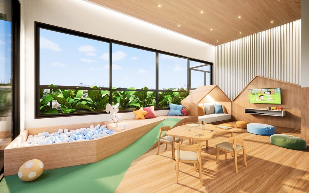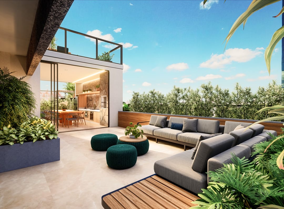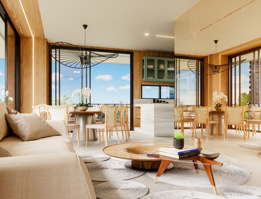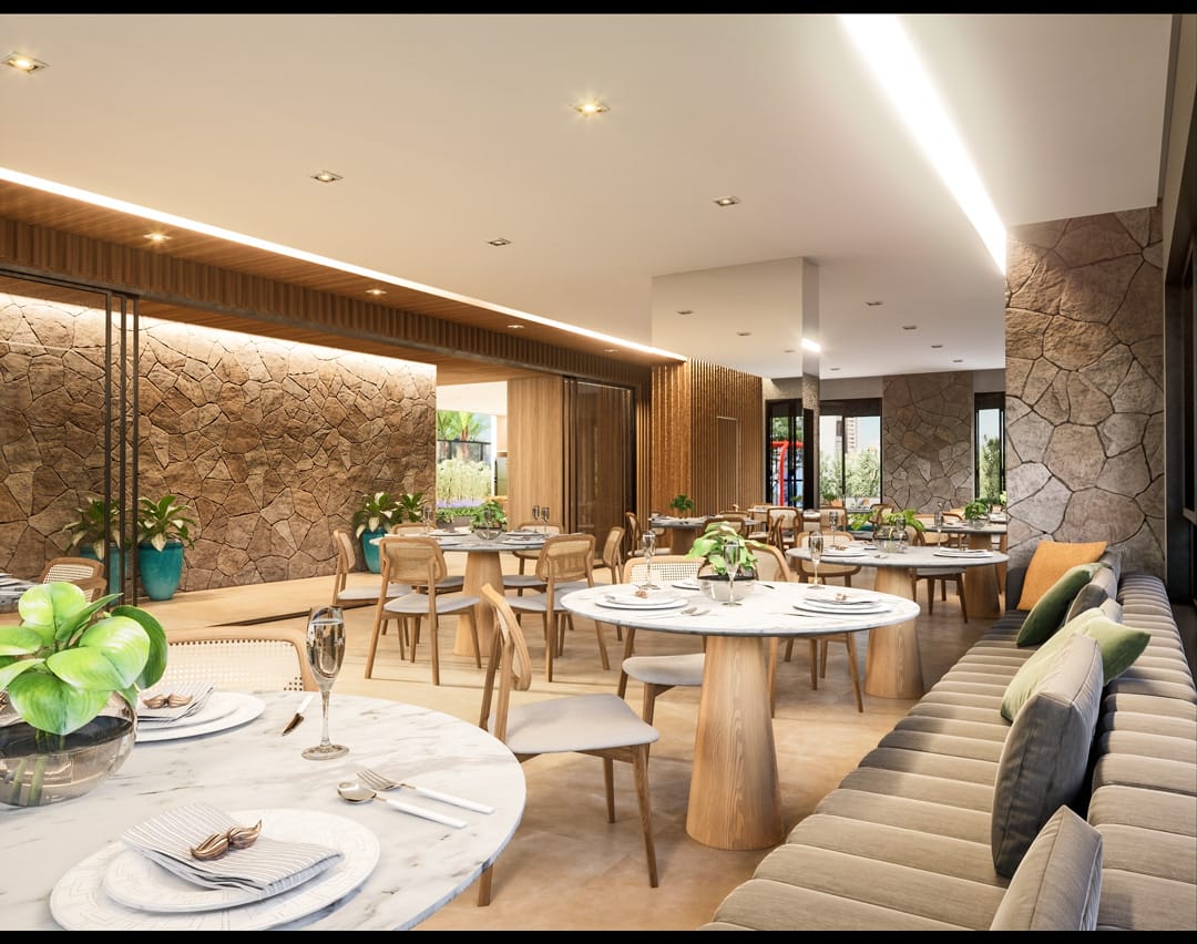 Piscina com borda infinita, salão de festas, espaço gourmet, brinquedoteca, playground, academia, sauna, spa e beleza.