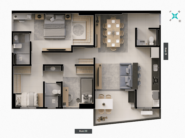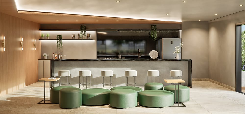 Sauna, academia, salão de festas, espaço gourmet com churrasqueira, playground, brinquedoteca, piscina aquecida raia de 26m, piscina infantil, lavanderia com jogos e sala de estar, coworking, mini mercado 24h, car wash, vaga verde.