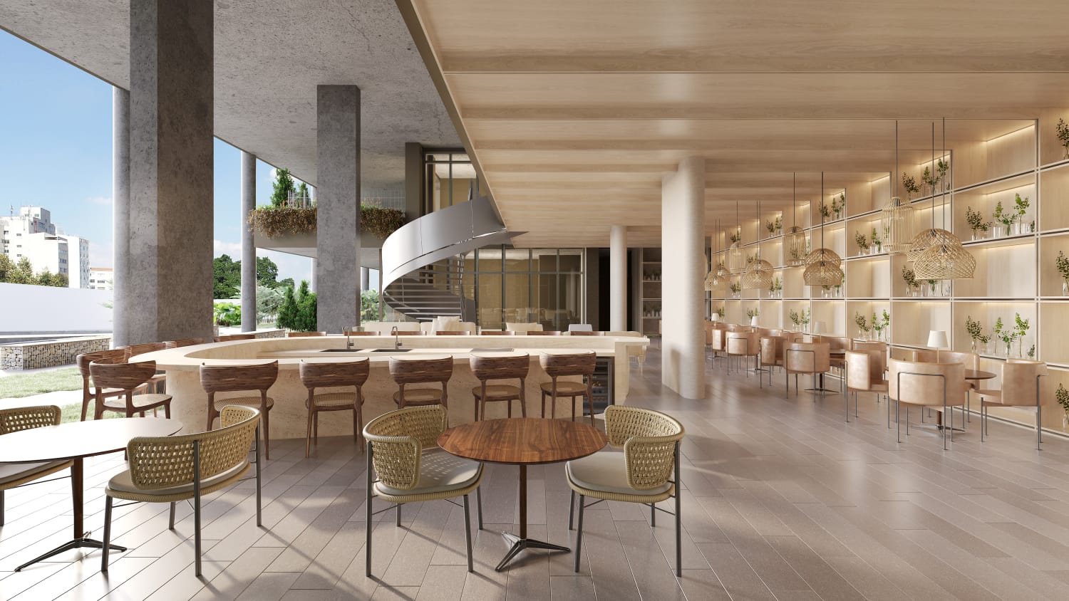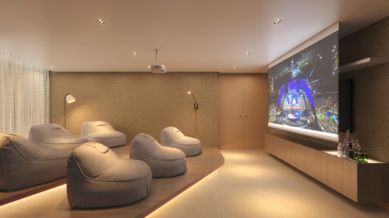 Academia, lavanderia, cinema, sala de reuniões, coworking, coliving, sala de jogos, espaço gourmet, spa, massagem, espaço beauty, churrasqueiras, terraços, piscinas, bar.