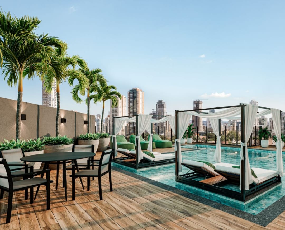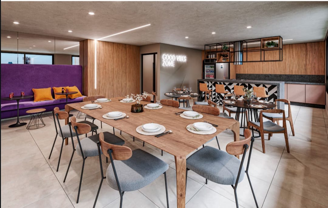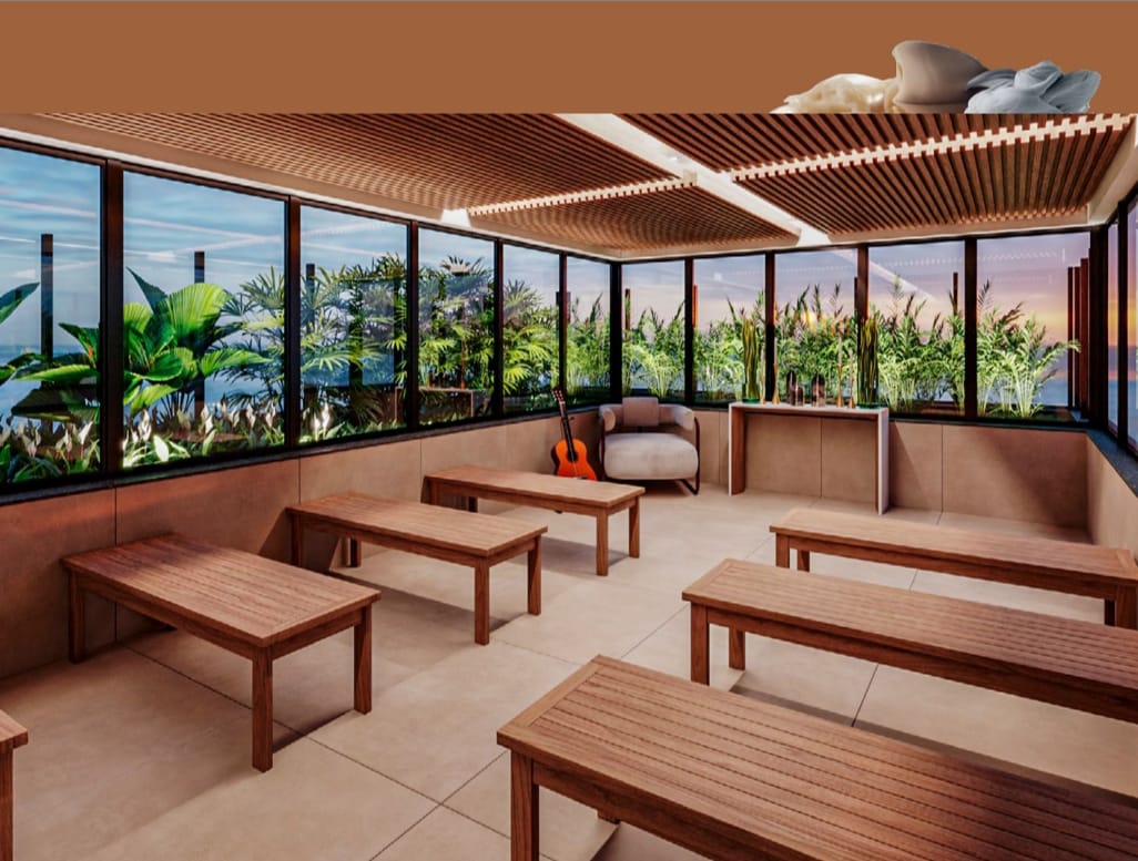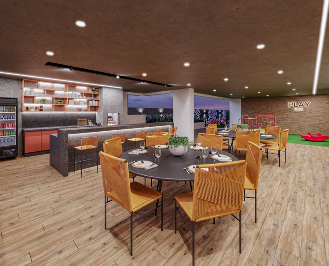 Coworking, pet place, piscina de nado infinito, academia, 3 espaços gourmet, churrasqueira, varanda de jogos, piscinas, playground, brinquedoteca, spa.